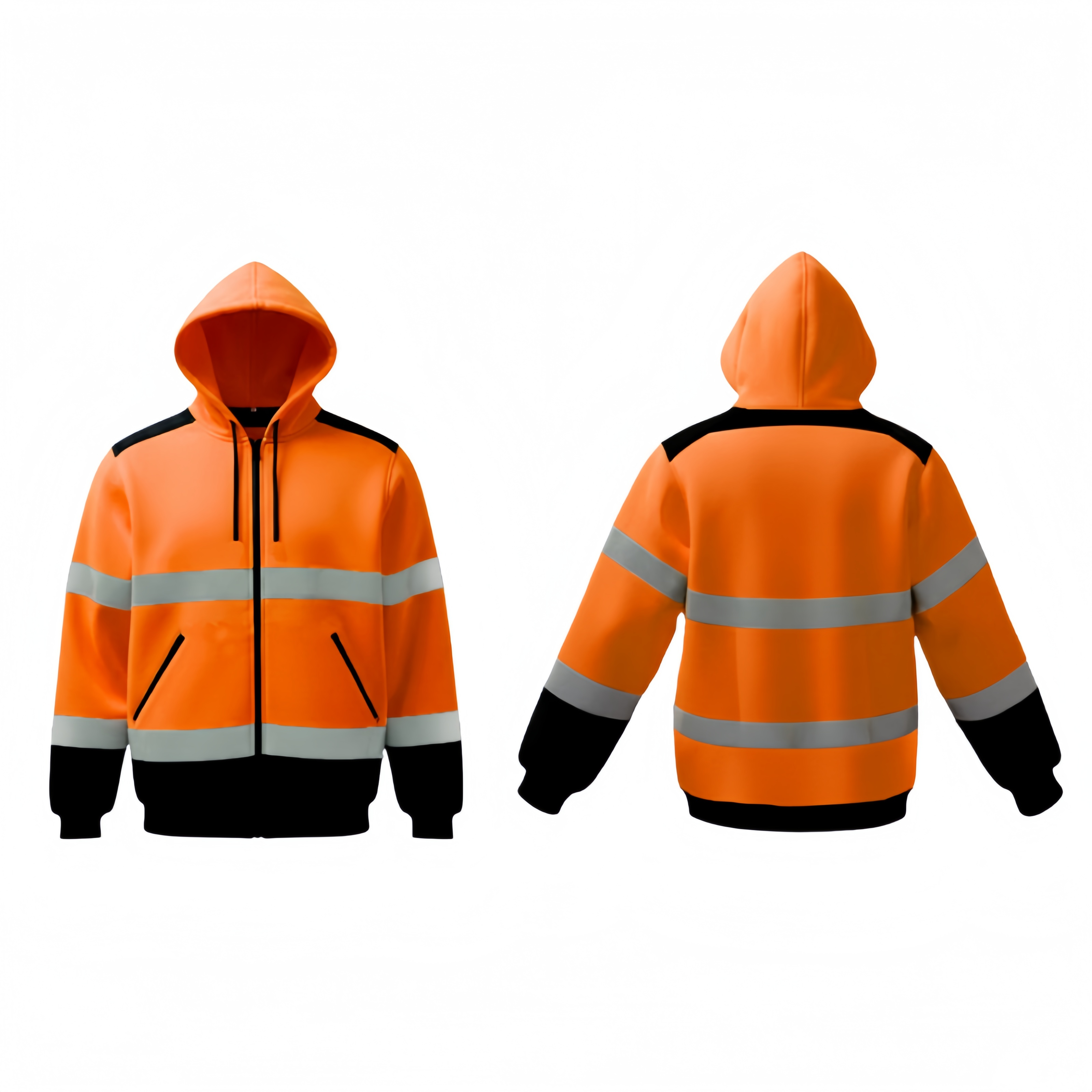 This reflective zip-up hoodie is designed for a wide range of industries and work environments where visibility, comfort, and practicality are essential.